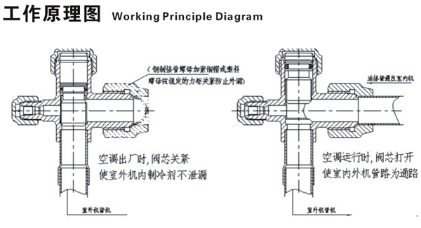 Important parts of valve system of split air conditioner,the outdoor machine and the imdoor machine is connected,open or close the refrigerant circuit,vacuum pumping and filling refrigerant effect;